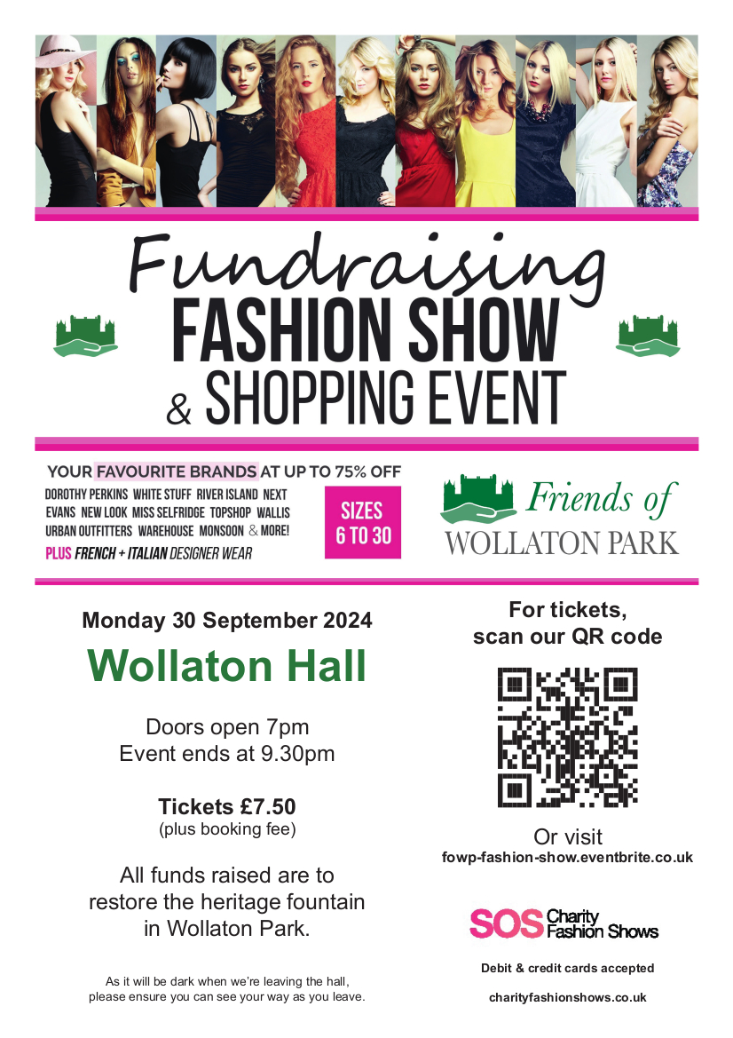 The event is a fund raiser to help the Friends of Wollaton Park restore the beautiful fountain and pond in the grounds of the Hall. Money made from ticket sales, refreshments and a raffle will contribute to the restoration project, so why not be part of this effort!