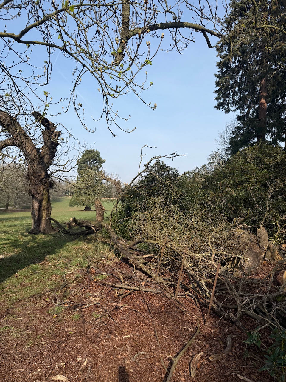 We couldn’t have asked for a better day at Wollaton Park. We had an incredible turnout for our latest task on Saturday, March 21, with thirteen volunteers joining forces with two park rangers to tackle some maintenance at the iconic Wellingtonia Grove. Wellingtonia Grove is one of the oldest and largest redwood groves in the UK. The grove was planted in 1868, a date confirmed by a marker stone recently found on-site.