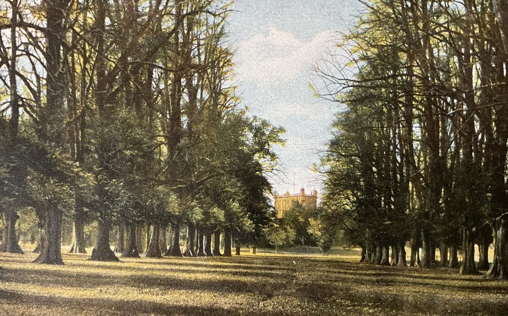 On some old Postcards, it is referred to as Sylvan Avenue. (Sylvan is an adjective meaning consisting of or associated with woods). The design of the park and gardens were known to be influenced by a 1662 publication, “Sylva, or A Discourse of Forest-Trees and the Propagation of Timber in His Majesty’s Dominions” by John Evelyn, so that could be the connection.